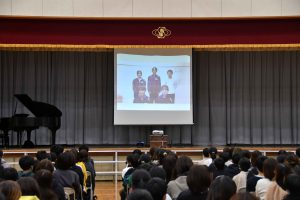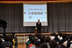1月15日(木)に新1年生の入学説明会を開催しました。1年生による素敵な歓迎の合唱が会場を和ませ、生徒会による学校紹介では行事や部活動の魅力を伝えました。6年生が授業を見学し、中学生への憧れと期待を膨らませました。生徒指導主事による説明では、入学に向けての準備について話をしました。