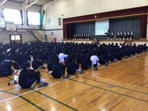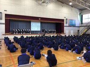 3年生が卒業した今、来年度の岐阜清流中学校をどのようにより良くしていくのか、立候補者15名(会長立候補3名)が全校生徒の前で自分の公約を熱く語りました。投票する生徒も真剣に一人一人の話を聴いていました。