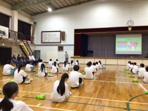 生徒たちは、心肺蘇生法やAEDの使い方について、岐阜北消防署からお招きした講師の指導のもと、キットを使用して実際に体験しながら学びました。