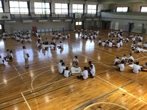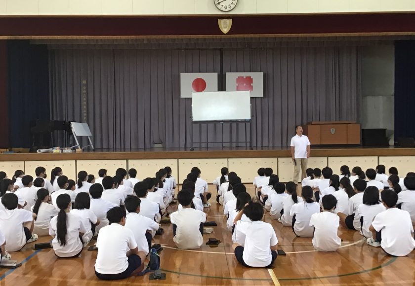2年生のテーマは、「社会で生きるために、わたしは。」です。この日は、鷺山まちづくり協議会から平田亨さんをお招きして、①大人の「働く」とは何か、②自分が働く時「どのように働きたいか」「やりがい(生きがい)を感じたいか」について、「KJ法」という分析方法を用いて意見を交流しました。