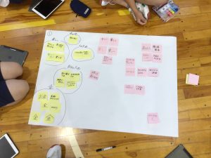 仲間の意見を集約していくと、①については「やりがい」「社会を豊かにする」「お金を稼ぐ」、②については「よりよい人間関係の構築」「ワークライフバランス」「達成感」などがキーワードとして浮かび上がってきました。