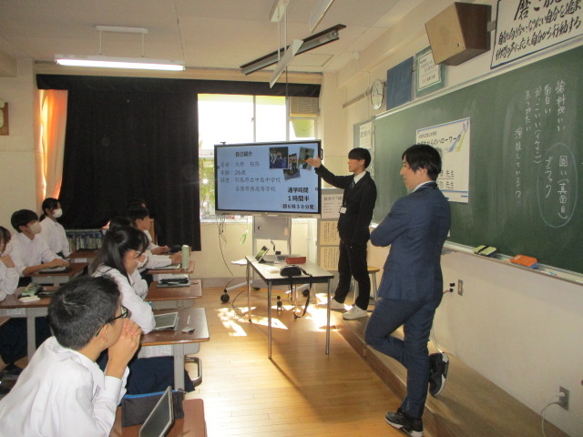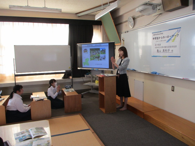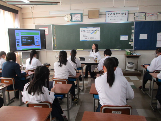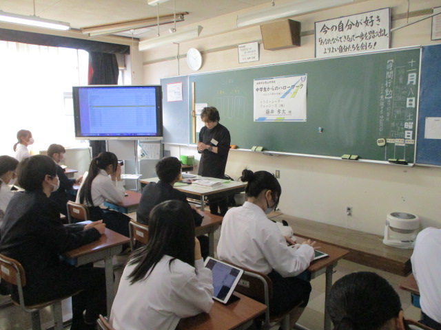 講師の中には、青山中学校の卒業生である方もみえ、この「中学生からのハローワーク」に中学生時代に参加したことが、現在の職業選択のきっかけになったとの貴重なお話もいただきました。