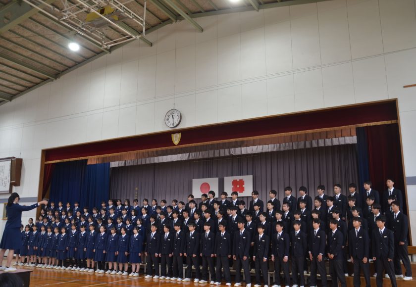 今年は学級合唱に加えて3年生の学年合唱、そして全校合唱も行われました。どの学級の生徒も練習の成果を発揮して力強く歌声を響かせ、生徒会スローガンの「全・全・全」を体現していました。