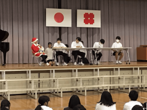 学年全員の前で何かを披露するのは勇気のいることですが、自分をさらけ出すことをためらわない心の値打ちを、これからも広めていきます。青山中学校は自分のよさ・強みを発揮でき、その姿を温かく受け止める学校だということを後輩に伝えるために、今回発表した一部のパフォーマンスを1月15日(木)にある新1年生1日入学にて披露する予定です。