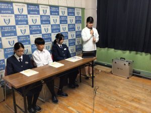 その日のお昼の放送では、献立を考えた生徒がその献立に込めた願いをお昼の放送で発表しました。