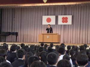 閉幕式では各学年代表生徒が自分の今を力強く語り、1年生による学年合唱「君をのせて」が披露されました。
