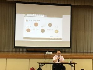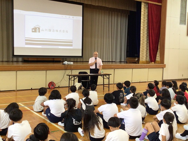 10月7日、3年生が醤油づくりを学びました。80年以上にわたり木桶で「たまり醤油」をつくり続けている岐阜市の山川醸造株式会社の山川さんにおいでいただき、お話を伺いました。醤油には「こいくち」「うすくち」「たまり」「再仕込み」「しろ」の5種類があること、山川醸造さんでは小麦をほとんど使わないグルテンフリーのうまみ成分の強いたまり醤油をつくっていらっしゃることなどを知りました。岐阜市の学校給食でも使われているおいしい醤油づくりの秘密を知り、またひとつ岐阜の魅力を発見することができました。