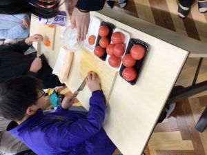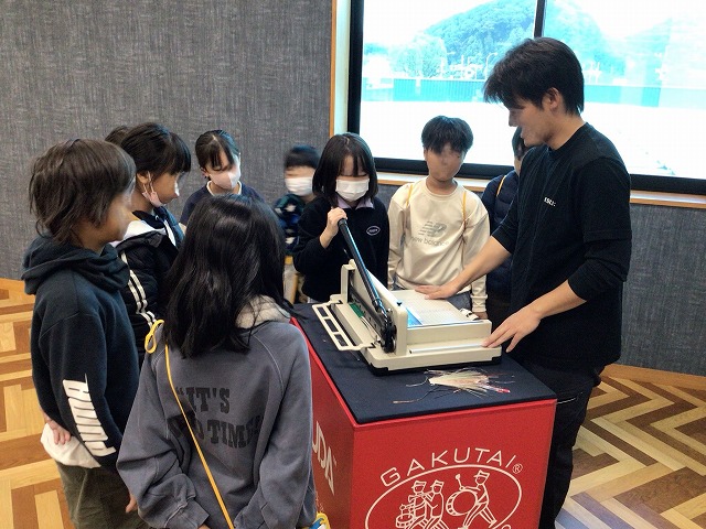 11月21日、4年生が関市のフェザーミュージアムへ社会見学にでかけました。刃物のまち「関市」の歴史や産業について、展示物を見たりお話を聞いたりしながら学んできました。実際に包丁の切れ味を試させていただくコーナーもありました。子どもたちは恐る恐る包丁でトマトを切りながら、関の刃物の切れ味のよさを実感していました。