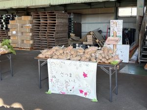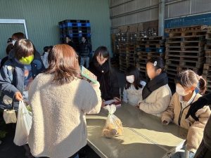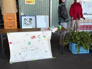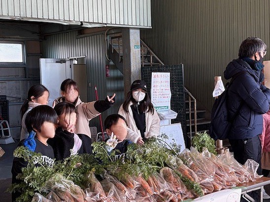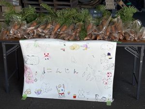 12月6日 PTA父親協力委員さんによる父協ファームが行われました。心を込めて育てた新鮮ないもや野菜を子どもたちが販売しました。事前に看板をつくったり、当日はお店番をしたりして、たくさんのお客さんに買っていただくことができました。採れたての野菜は、みずみずしくてとてもおいしかったです。大根やニンジンの葉っぱもおいしくいただきました。お疲れ様でした。