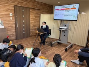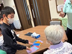 5年生がファミリーケア島で、今年度最後の交流をしました。これまで1年間学習してきたことを発表したり、折り紙やけん玉で一緒に遊んだりしました。進んで質問したり、話しかけたりと、初めのころと比べてずいぶん積極的な姿が見られ、5年生の成長を感じました。