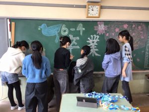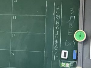 3月18日にお別れ式を行いました。1年生から5年生の代表児童が、縦割り活動や学校活動などでお世話になった6年生へのお礼と進学のお祝いの言葉を述べ、みんなで校歌を歌いました。19日は卒業式。お別れはさびしいですが、中学校でも活躍くださいね。