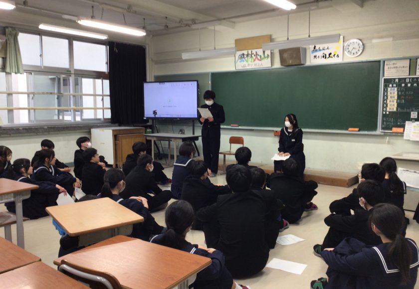 2月25日(水)、3年生が1・2年生に向け、自分の中学校生活から学んだことなどについて語りました。生徒会活動に取り組んだこと、勉強に力を入れたこと、部活動を一生懸命だったことなど、後輩に向かけて、自分たちの言葉で熱く語りました。
