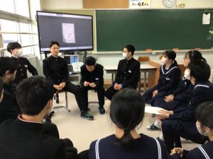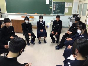 質問会では、グループごとに分かれて、集中して勉強ができる方法や悩んだときにどう乗り越えてきたかなど、先輩にアドバイスを求めていました。やはり3年生の先輩が語る言葉はリアルで、1・2年生は真剣な表情で話を聞いていました。