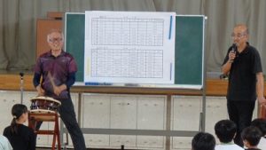 ぎふ早田太鼓の会から5名の先生が、学校に来ていただき、体育館で練習が行われました。