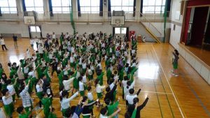そのあと、代表の子の「運動会頑張るぞー!」の声の後に「おぉー!」と大きな声を出して、気合を入れました。