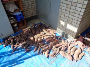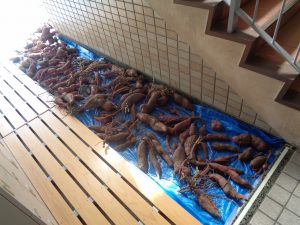 収穫した芋は、甘みを出すため数日間、置いておきます。
