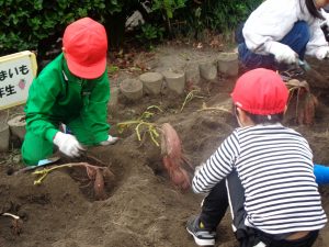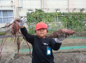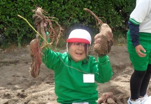 堀り始めると、大きな芋が少しずつ姿を現わし、子どもたちは歓声を上げました。