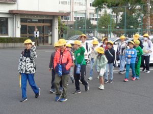 待ち時間ができたときには、各班で6年生が中心となり自然とじゃんけんゲームが始まるなど、微笑ましい姿が見られました。また、移動中には、6年生、5年生が班の仲間の安全を確保するため、一旦停止の指示をしたり列を整えるように声をかけたりしていて、とても頼もしく感じました。