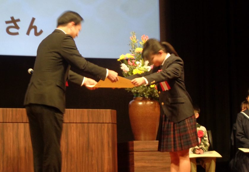 優秀賞の6年生 竹田 望央さんは、昨日11月16日(日)に岐阜市文化センターで行われた表彰式に出席しました。