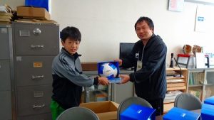 FC岐阜から早田小学校に、サッカーボールがプレゼントされました。早田小学校の代表として、体育委員さんが受け取りました。 「このボールで、サッカーを楽しんでください。」と言葉をかけられると、 「ありがとうございます。大事に使います。」と丁寧にお礼を伝えました。 体育の授業で、役立てたいと思います。 FC岐阜の皆さん、ありがとうございました。