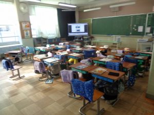子どもたちにも先生たちにも、事前に訓練の日時を伝えず行いましたが、地震発生の連絡が入ると、子どもたちは速やかに机の下に入るなど、落下物や倒壊物から身を守る動きをとりました。