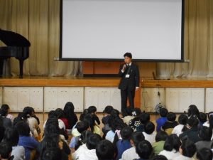 最後に生徒指導担当の柳原先生が、「学校や家庭、社会のルールを守って、自分や周りの人の心や体を傷つけることなく過ごせるようにしましょう。」と伝えました。