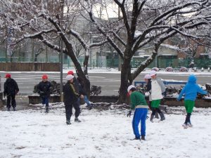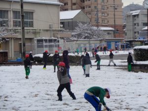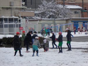 休み時間になると、元気よく雪の中を駆け回る子どもたちの姿がありました。着替えがなくても、長靴やレインシューズでなくてもお構いなしです。元気よく遊ぶのは子どもの仕事でもありますから、保護者の皆様には、ぜひお子様を温かくお迎えいただきたいです。