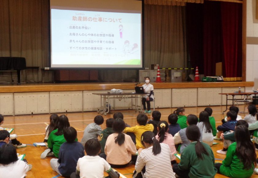 2月6日(金)の5時間目に、岩佐病院・岩佐マタニティの助産師 小寺 真未 様を講師としてお招きし、4年生で「命の授業」を行いました。
