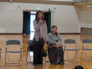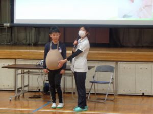 小寺様から、助産師の仕事内容やお母さんのおなかの中の胎児の成長について、スライドを使って説明していただきました。