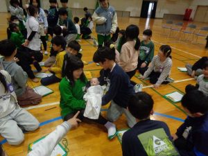 次に、全員が新生児の人形を抱っこする体験をしました。