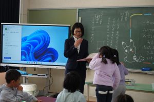 校長先生が修了式で、1年生から5年生に対し、「皆さん一人一人が、この1年間で立派に成長しました。皆さんがそれぞれの学年の課程を修了したことを証します。」と伝えました。