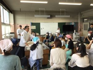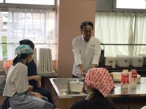 3年生のセルフデザイン(家庭科)の時間に、パティシエの方をお招きしてプリンの作り方を教えていただきました。パティシエの方は『なめらかプリンの生みの親』で岐阜市内にお店を開いていらっしゃいます。昨年度に続いて講師を引き受けていただきました。