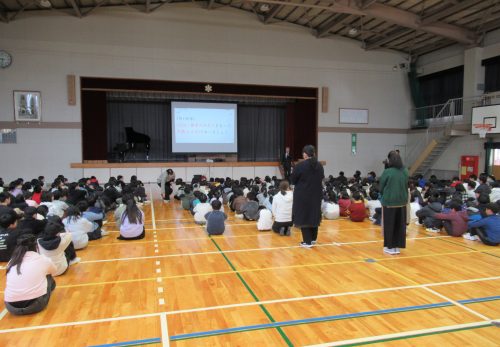 12月26日(金)に冬休み集会がありました。夏休みが明けてから今日まで、運動会やしあわせづくり月間、イチョウまつりや校外学習などたくさんの行事がありました。エンジョイバンドも6年生から5年生に引き継がれました。全校、そしてクラスの仲間と声をかけあって協力しながら充実した日々を送ることができました。