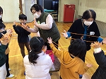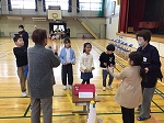 1年生は、12月23日(火)の2時間目に木之本シニアクラブ、3時間目に徹明長生会の方々に来ていただき、あやとりやコマ回し、お手玉やけん玉のあそび方を教えていただきました。1年生は、昔のあそびは知ってはいましたが、遊んだ経験は少なくなかなかうまくできない子がたくさんいました。4つのあそびをグループごとに回りながら、地域のあそび名人の方々の説明を聞いたりお手本を見たりしながら一生懸命挑戦していました。けん玉をのせることができたりコマを回すことができたりしたときには、大喜びでした。