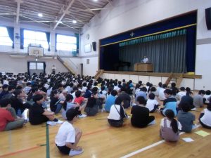 10月16日に全校が体育館に集まって後期始業式を行いました。