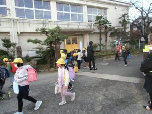 登校した児童は、「あはようございます」の声に加え、ハイタッチであいさつを交わしていました。いつもにも増して明るくさわやかなあいさつの声が響いていました。