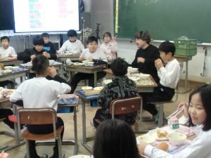 最後には講師の先生方と一緒に給食をため、いろいろな話をすることができました。