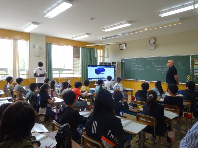 5年生、英語「Happy Birthday」ALTの先生と一緒に発音練習をしていました。