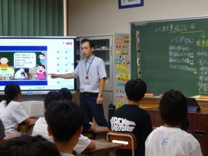 いじめを見逃さない日、全校一斉の学活を行いました。今回のテーマは、「いじりといじめ」です。いじめ対策監の先生から、実際に、いじられることで、みんなを笑わせているお笑い芸人を例にしたプレゼンテーションを使って、今日考えたいテーマについて全校に投げかけました。