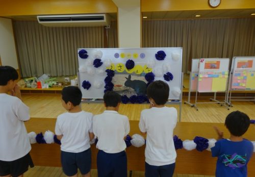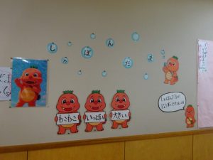 校舎内を歩いていたら、1年生の廊下にこんな掲示物を見つけました。可愛かったので思わずパチリ!そてつ君から言われた「おねがい」を達成するべく、頑張っていることがわかります。もこもこシャボン玉、いっぱいのシャボン玉、大きなシャボン玉、そてつ君に見せてあげてね。