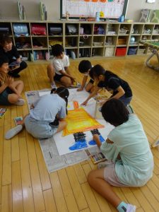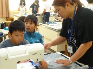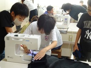 「見て!見て!こんなにまっすぐ縫えたよ」と、縫い目を見せてくれる子も何人かいました。初めてミシンで縫ったそうですが、とってもきれいな縫い目に驚きました。早く完成するといいですね。