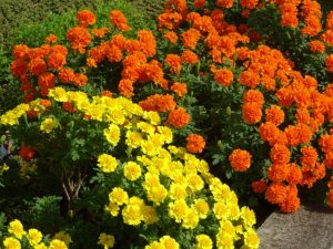夏の花壇を彩る色鮮やかな「マリーゴールド」夏の間は、そんなに株も大きく育つことなく葉の色も悪く花も小さく・・・今年のマリーゴールドはあまりうまく育たなかったね・・・と、いつもお世話いただいている校務員さんと話していました。でも、9月後半頃から株がぐんぐん大きくなり、今とっても美しく咲いています。本当に今年の夏は(も)暑かったんですね~。