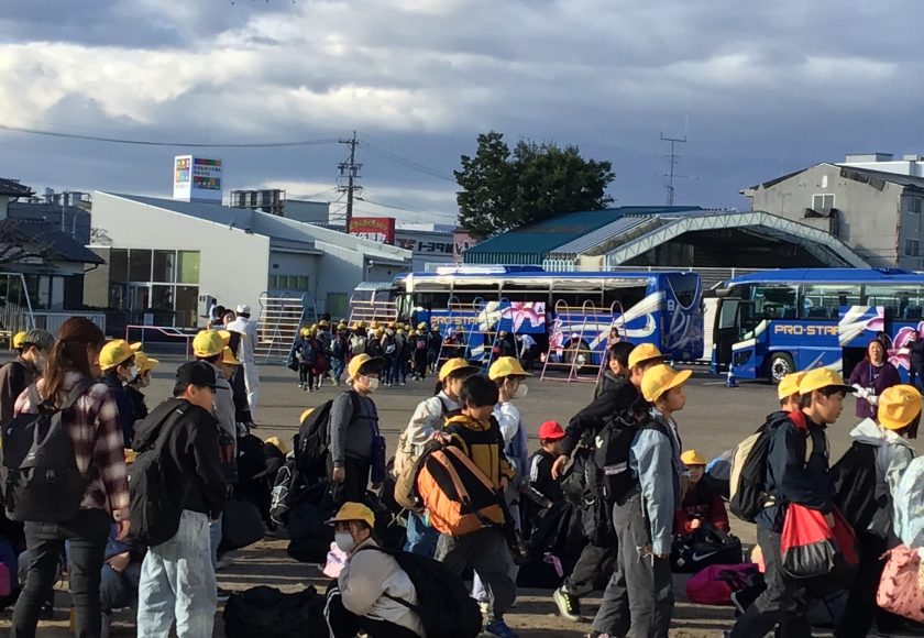 今日から、5年生は1泊2日の野外学習です。いつもよりも少し早く集合し、元気に学校を出発しました。熊出没の心配があるとのことで、屋外での活動はできなくなりましたが、とても楽しそうにワクワクして登校しました。