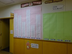 やないづ名人クエスト「あいさつ」が終わりました。廊下にはずらーっと名人になった子たちの名前が掲示されています。今は、第2弾の「そうじ」に取り組んでいます。あいさつ同様にたくさんの名人が誕生することを期待しています。
