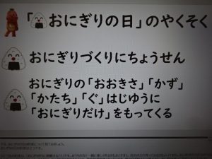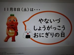 お昼の放送では、栄養教諭から「おにぎりの日」について話がありました。今週の土曜日は、土曜授業でやないづスポーツクラブ主催の「スポーツ活動」が行われます。そのため、この日を「おにぎりの日」として、始業時刻を1時間遅らせて、自分でおにぎりを作って登校しようと呼びかけています。