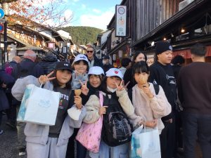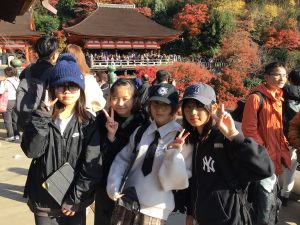 二条城では、金閣寺とは違った厳かな雰囲気の中、鶯張りの「キュッ!キュッ!」という音を聞き、大政奉還が行われた江戸時代の最期にタイムスリップ…した気持ちになりました。昼食は湯豆腐を堪能し、いよいよ旅のラスト清水寺です!