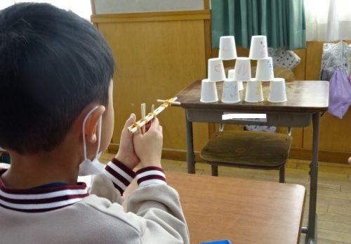 1年生の国語です。難しい日にちの読み方の学習をしていました。1日(ついたち)2日(ふつか)など、あまり言い慣れない言葉ですが、正しく使えるように練習していました。8日を「はつか」と勘違いしてしまっている子がいました。この間違い、分かる気がします。読み方が分かったら、教科書の文を、先生がたたくタンバリンのリズムに合わせてテンポよく読み上げました。