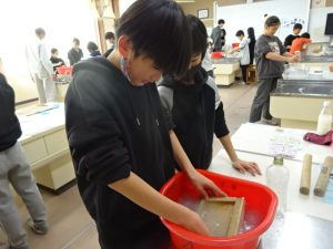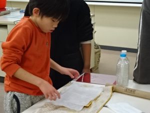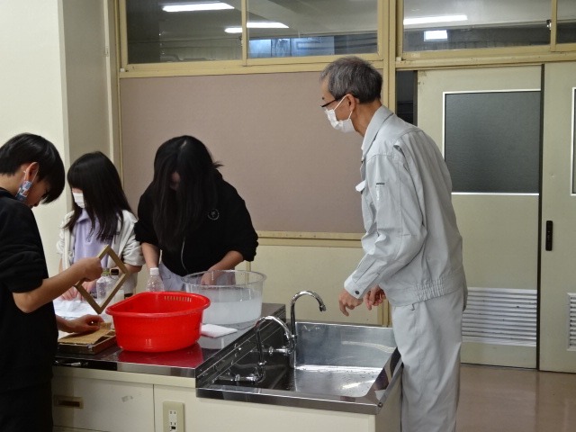 ちょっと見えにくいですが、漉き上がった紙、見えますか?楽しい体験ができてよかったですね。