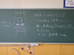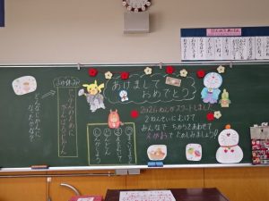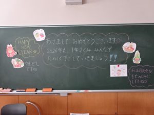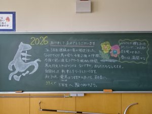 久しぶりの登校、子どもたちの元気な声が校内に響きます。例年よりも少し長かった冬休みを終え、年度末のゴールに向けてのラストスパートが始まりました。