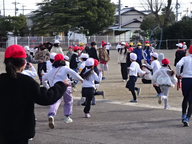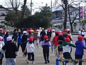 今年度4回目の『命を守る訓練』を行いました。今日は、学級から離れて各自がバラバラの場所で過ごしている「元気タイム」に訓練が始まりました。休み時間なので、運動場ではボールで遊んだり、縄跳びの練習をしたりと、それぞれが仲のよい友だちと楽しく過ごしていました。しばらくすると、「ピンポンパンポーン 訓練放送、訓練放送・・・」という放送が流れてきました。子どもたちは遊びをやめて、崩壊や落下の可能性がある建物などのない場所へと移動し、姿勢を低くして静かに待つ姿が見られました。